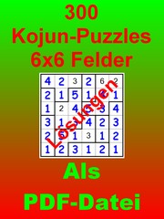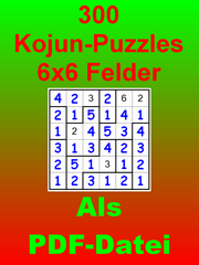 Hier findest Du viele Kojun-Puzzles in verschiedenen Größen mit Lösungen